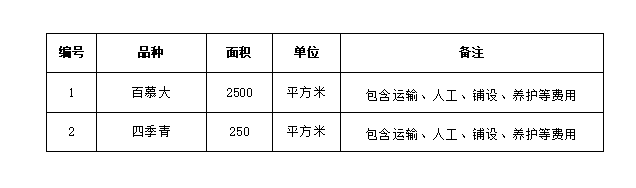 1. 本項目最高限價為含稅價43750.00元(肆萬叁仟柒佰伍拾元整),百慕大草皮單價最高限價為15元/㎡、四季青灌木單價最高限價為25元/㎡,投標具體單價不得高于最高限價,否則按無效標處理。